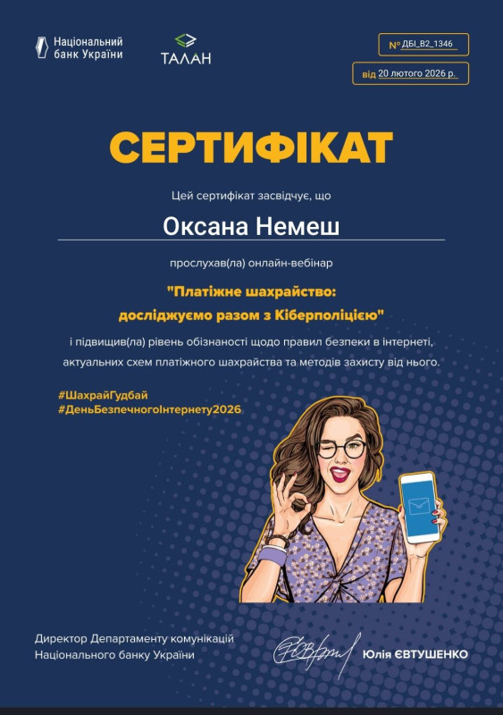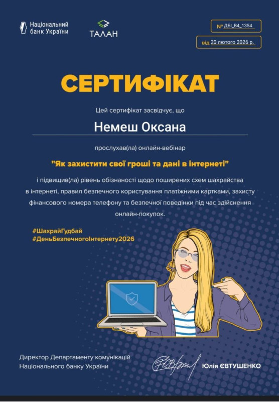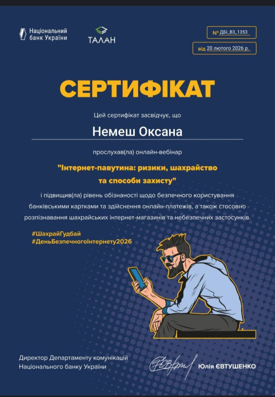 Протягом декади у лютому місяці наш заклад освіти активно долучився до відзначення Тижня безпечного Інтернету та платіжної безпеки "Разом проти шахрайства в інтернеті".