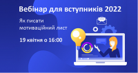 Читати далі...Вебінар для вступників 2022: «Як писати мотиваційний лист»