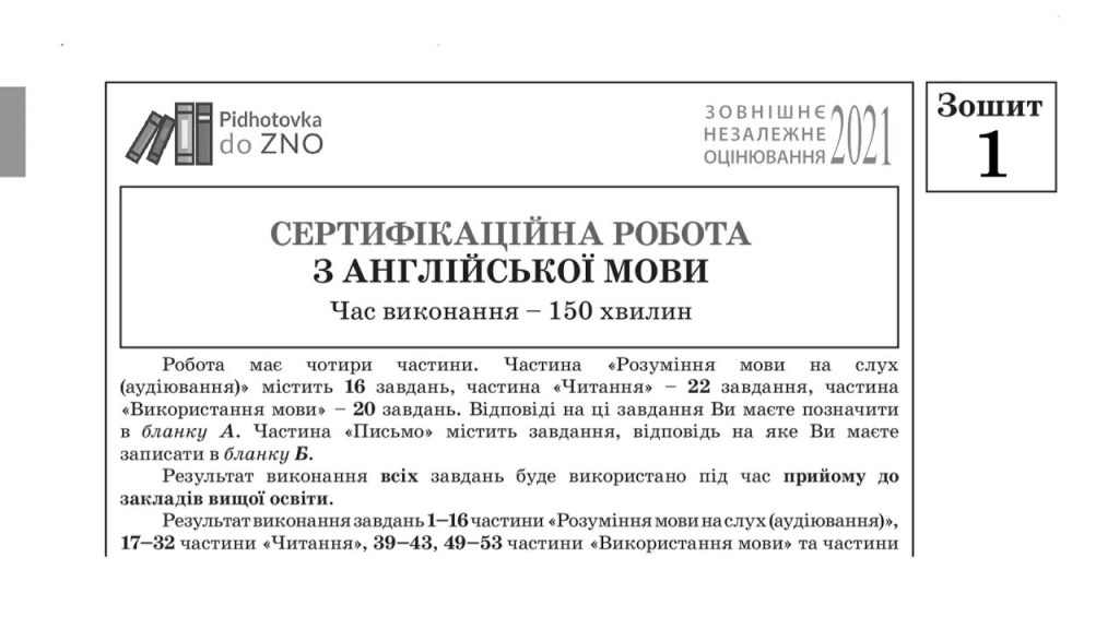 У 2021 році в переліку навчальних предметів зовнішнього оцінювання виокремлюють: 1) українську мову та 2) українську мову і літературу.Особи, які у 2021 році завершують здобуття повної загальної середньої освіти та/або планують вступати до закладів вищої освіти, під час реєстрації на ЗНО матимуть можливість самостійно обирати, яку саме роботу виконуватимуть під час зовнішнього ..
