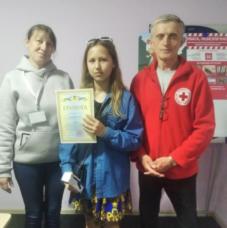 25 травня інструктори з мінної безпеки Товариства Червоного Хреста України, Лариса Сахно та Сергій Леонтович, привітали юних конотопців з перемогою у конкурсі, вручили грамоти та сувеніри.