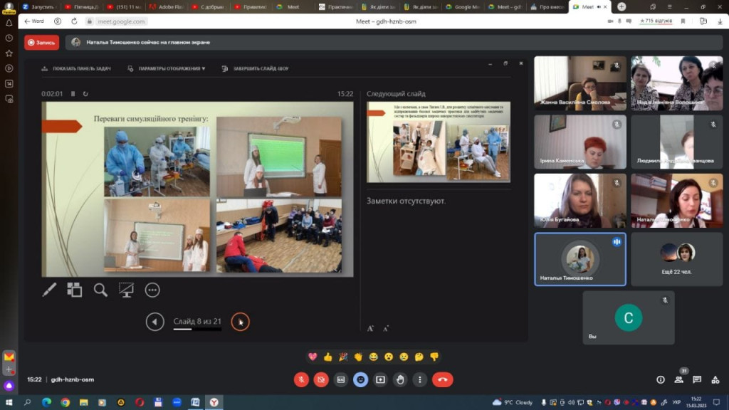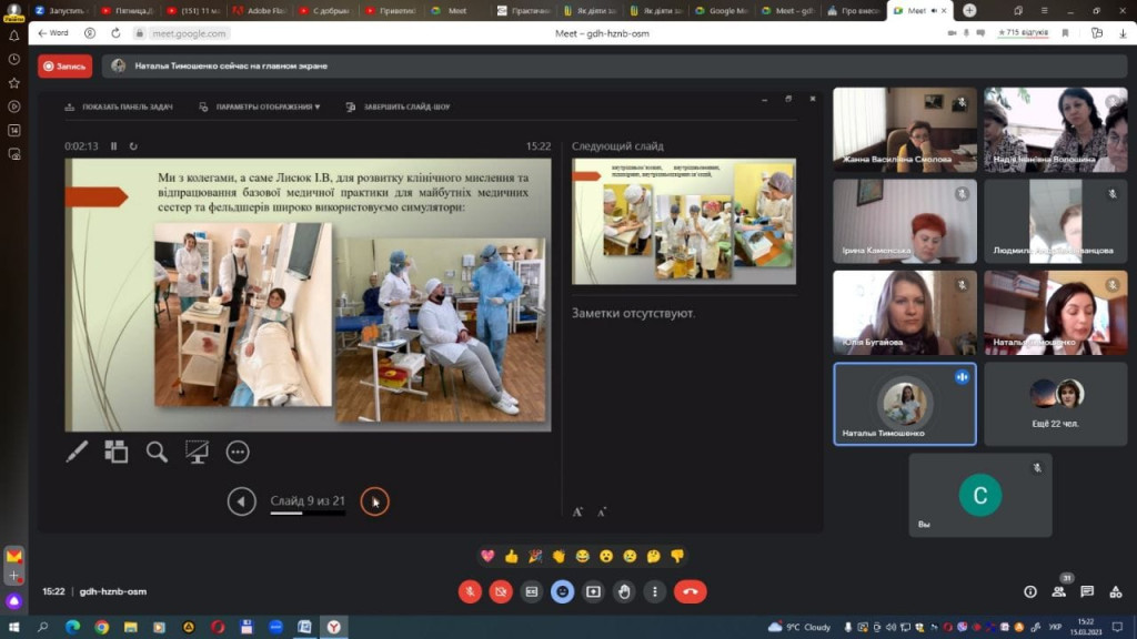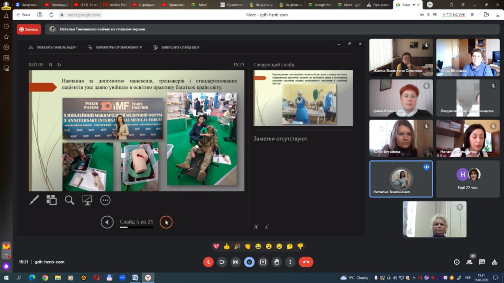 Всі учасники конференції в онлайн режимі ділилася своїм власним практичним досвідом викладання в умовах змішаного навчання, сучасними формами та методами освітньої професійної діяльності та знаходили шляхи вирішення проблемних питань у підготовці кваліфікованих медичних фахівців.