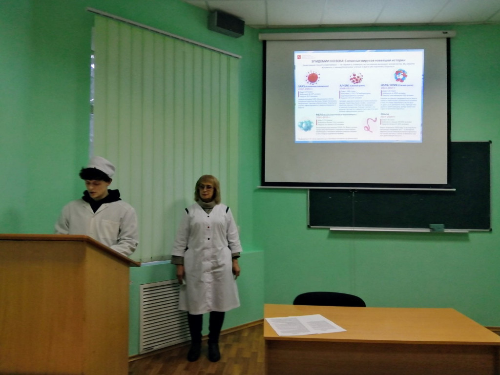 Згідно графіка проведення відкритих занять викладачами коледжу у групі 4 мс пройшла лекція «Медсестринский процес при гострих респіраторних вірусних інфекціях у дітей». Студенти виступили із змістовними повідомленнями про стан захворюваності на ГРВІ та зробили історичний екскурс у минуле епідемії гострих вірусних інфекцій. Майбутні медики узагальнили знання з даної теми, брали активну участь в обговоренні питань медсестринського процесу при гострих респіраторних інфекціях у дітей. Викладач Курдюмова Н.О. особливу увагу приділила і проблемним питанням сьогодення – короновірусній інфекції, її проявам, особливостям перебігу у дітей та відповідним профілактичним заходам.