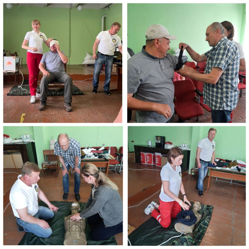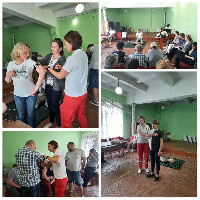 Усі присутні прослухали лекцію «Перша домедична допомога» та активно відпрацювали практичні навички, які надаються при пораненнях різного ступеня тяжкості, кровотечах, транспортування постраждалих при переломах, правила надання першої допомоги при ранах, опіках, кровотечі, правильні дії при пошкодженнях ока, серцево - легеневої реанімації дорослого і дитини та взаємодопомоги при критичних станах.
