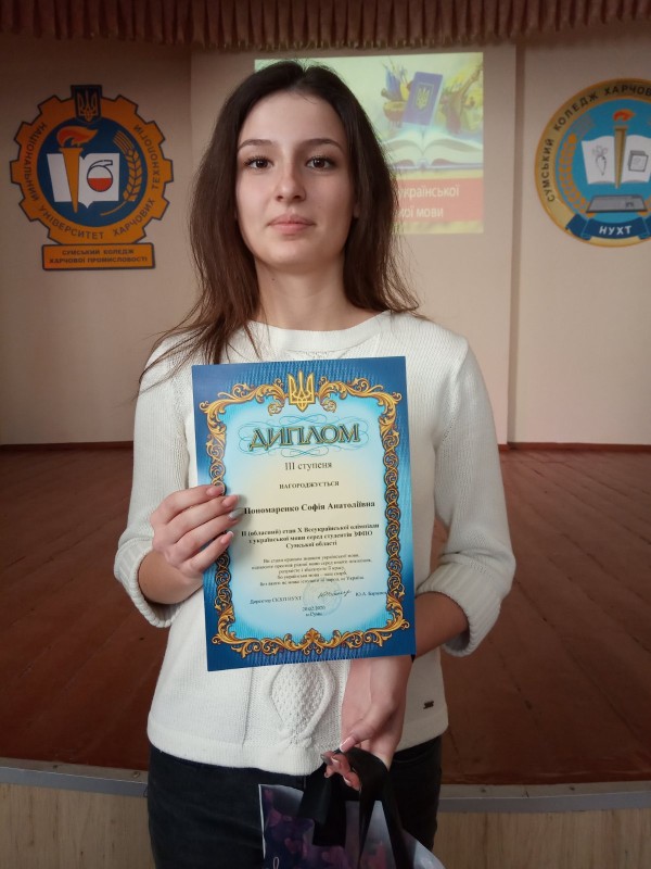 КЗОР «Конотопський фаховий медичний коледж» представляли студентки Пономаренко Софія (група 2ф) та Калінська Анна (група 2мс), які показали гідні результати. Пономаренко Софія здобула перемогу і нагороджена дипломом ІІІ ступеня, а Калінська Анна отримала сертифікат учасника.