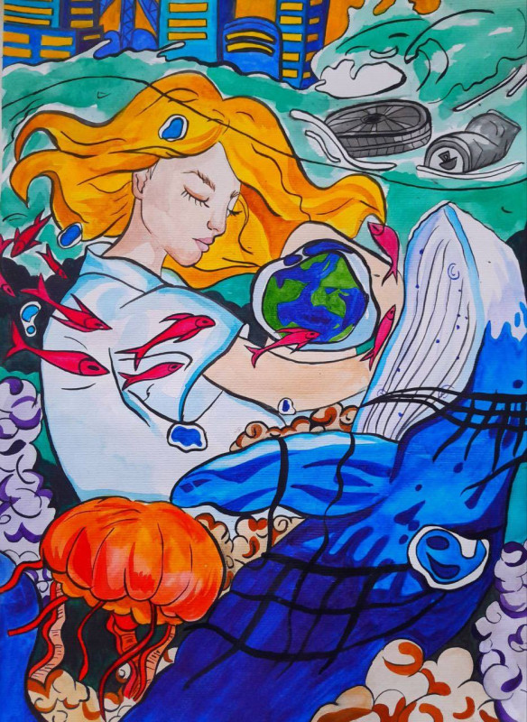 За результатами конкурсу Софія ЛИСЕНКО (група 2Аф), здобувачка освіти КЗСОР "Конотопський фаховий медичний коледж" посіла І місце. На розгляд журі студентка представила малюнок "Коли океан плаче".