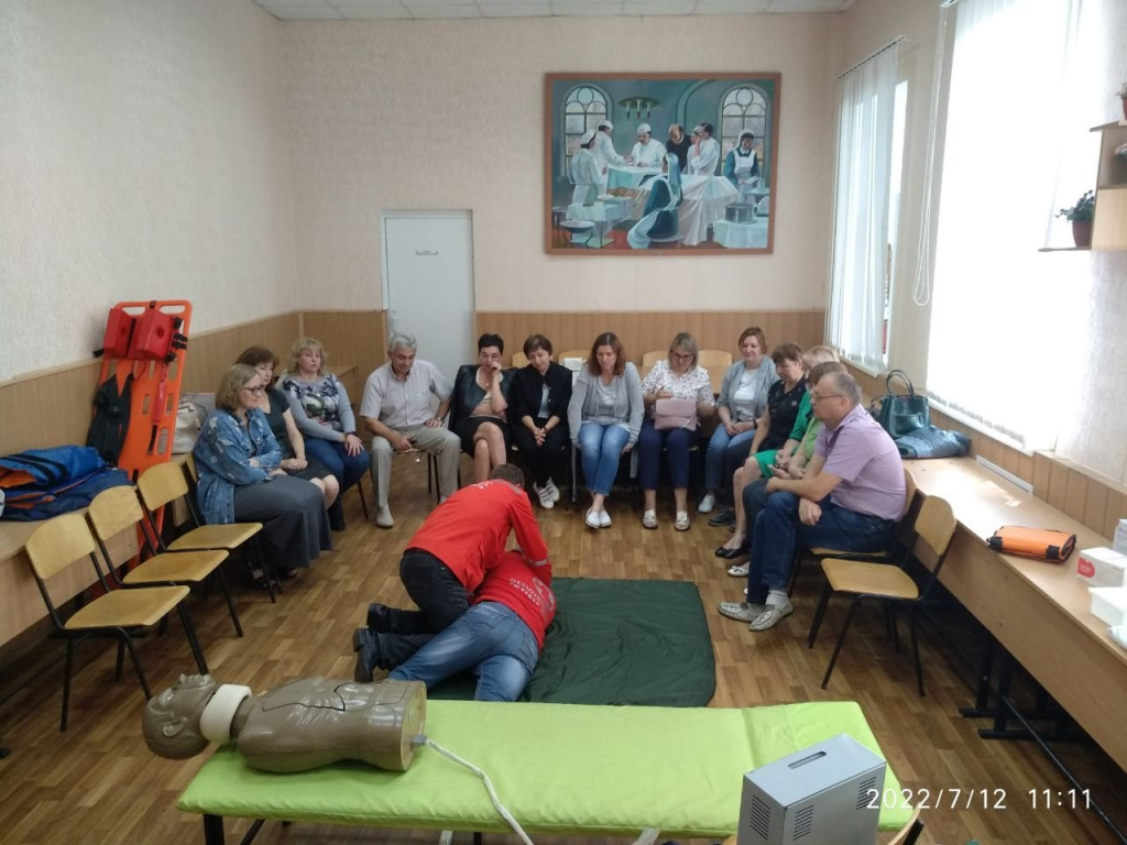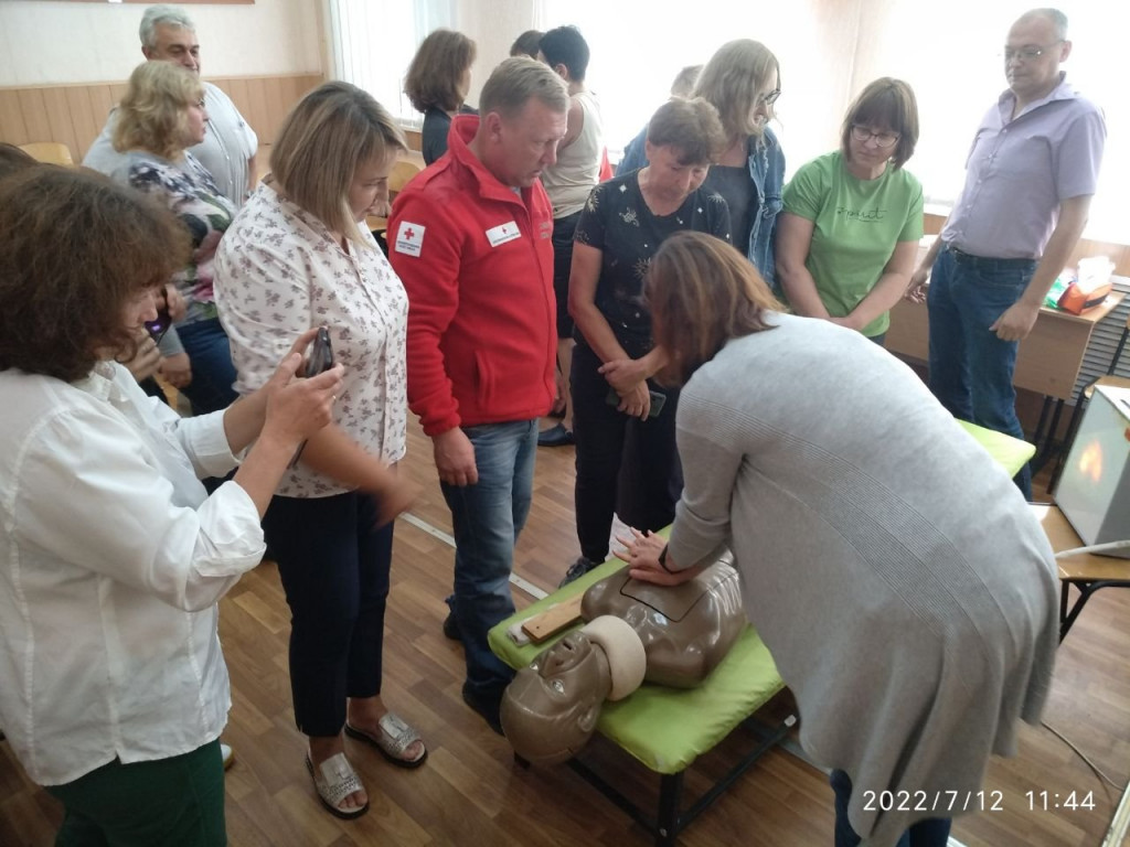 Під час тренінгу всі присутні прослухали лекцію з курсу першої невідкладної допомоги та охочі спробували виконати практичні базові реанімаційні заходи.