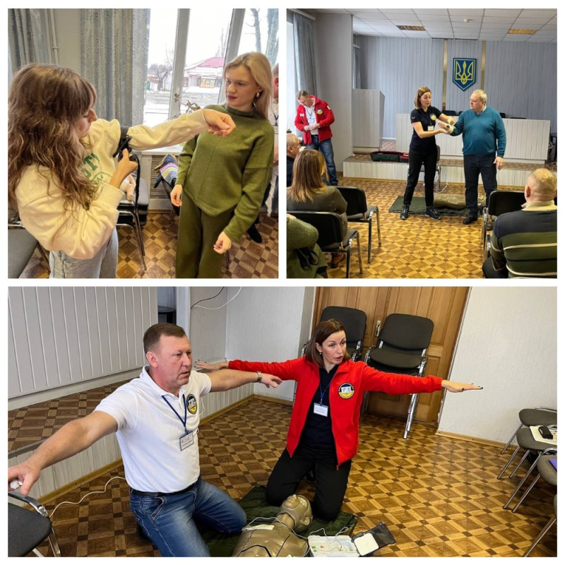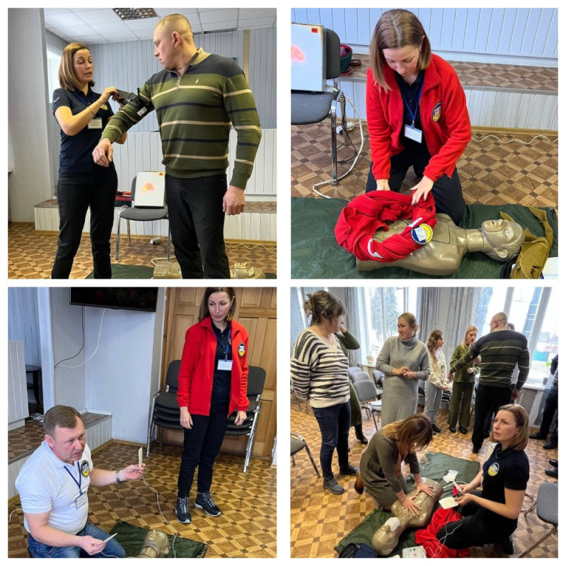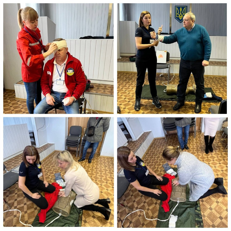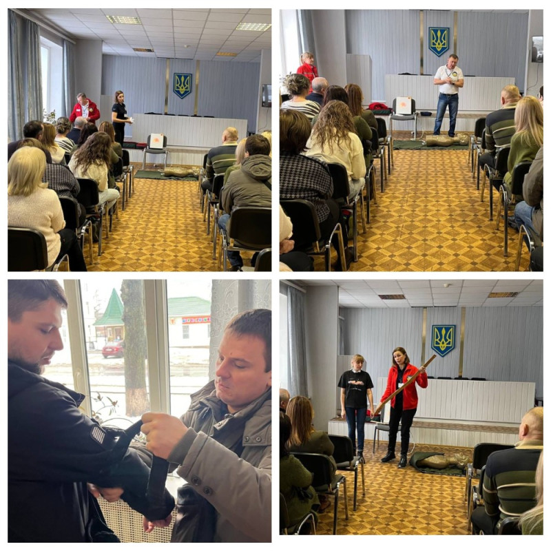 Усі присутні із зацікавленням прослухали лекцію та виконали практичні навички з надання першої домедичної допомоги при різних видах кровотеч, травмах, переломах, судомах, допомога при втраті свідомості, правильні , серцево - легеневій реанімації та інше.