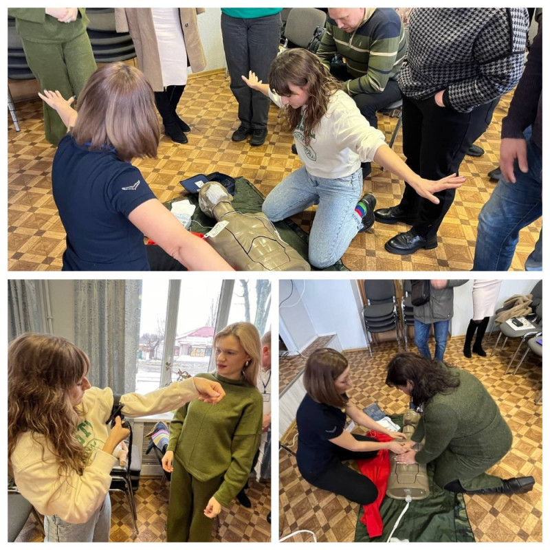19 січня 2024 року Наталія Тимошенко, Олена Гуденко, Сергій Спаський - представники ініціативної групи «Твори добро» КЗ СОР «Конотопський фаховий медичний коледж» провели практичний тренінг з першої домедичної допомоги для представників професійної спілки залізничників і транспортних будівельників України Конотопської територіальної профспілкової організації.