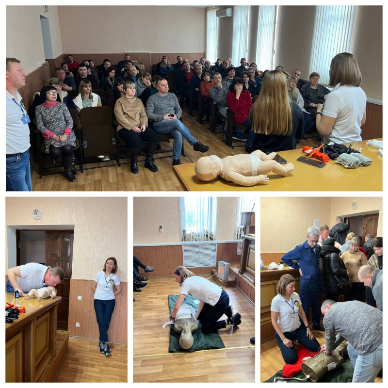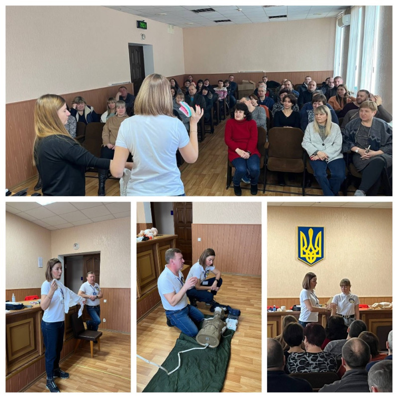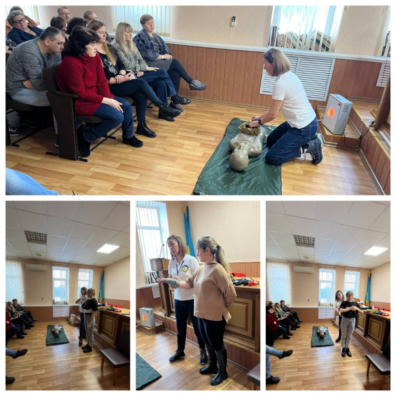 Усі бажаючі учасники тренінгу із зацікавленням прослухали лекцію та виконали практичні навички з надання першої домедичної допомоги при різних видах кровотеч, травмах, переломах, судомах, допомога при втраті свідомості, правильні , серцево - легеневій реанімації та інше.