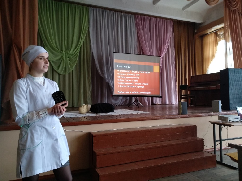 Діти прослухали інформаційну бесіду, яка супроводжувалась презентацією «Коронавірусна інфекція COVID-19». Учні та вчителі мали змогу ознайомитися з історією виникнення, симптомами, заходами безпеки, профілактики даної інфекції та отримали стандартні рекомендації МОЗ України щодо запобігання вірусних інфекцій, зокрема коронавірусної.