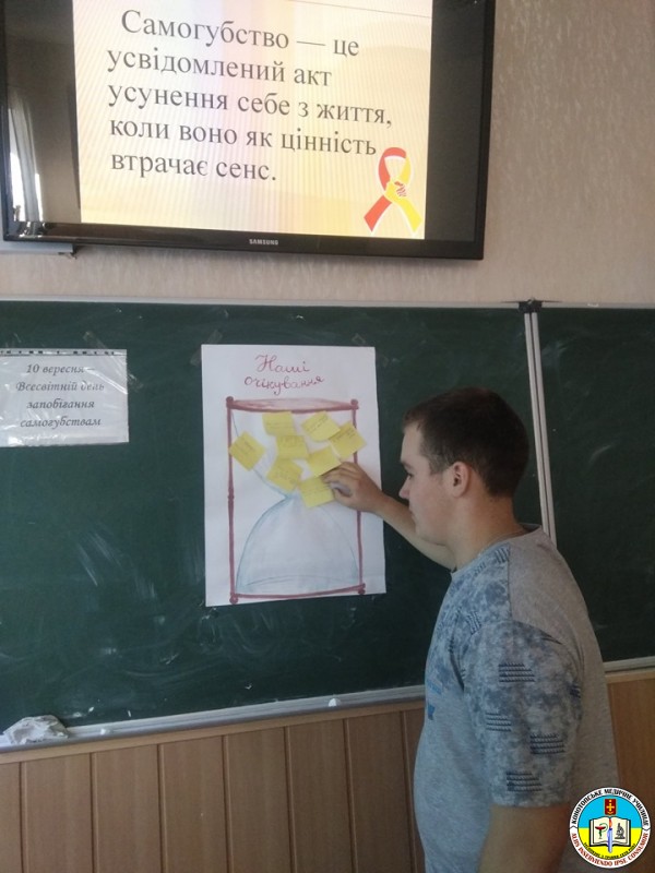 10 вересня оголошено ВООЗ Всесвітнім днем запобігання самогубствам. Суїцид – це глобальна і трагічна проблема для світової охорони здоров’я. По всій землі після рішення накласти на себе руки вмирає більше людей, ніж у результаті воєн і насильницьких убивств, разом узятих. У Конотопському медичному училищі практичним психологом Шабалою А.С. та соціальним педагогом Базарною О.М. було проведено заняття з елементами тренінгу «Профілактика суцидальної поведінки» для студентів групи 1ф.