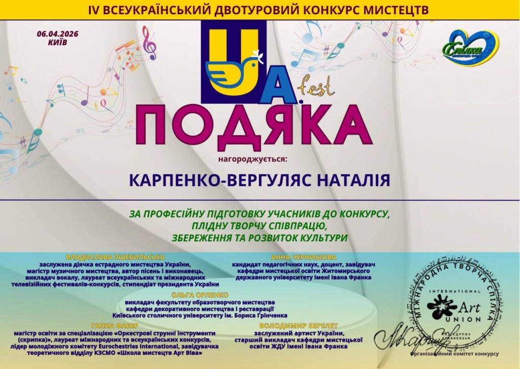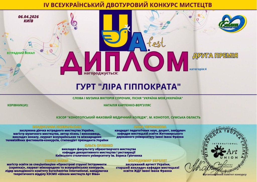 IV Всеукраїнському двотуровому конкурсі мистецтв «UA fest», який відбувся у м. Київ
