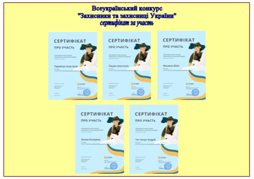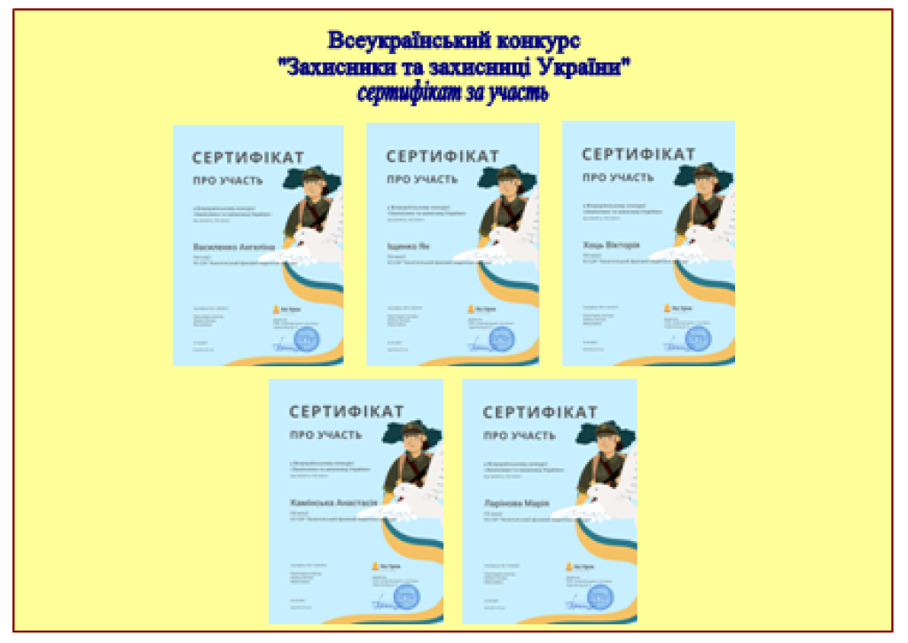 УЧАСТЬ У ВСЕУКРАЇНСЬКОМУ КОНКУРСІ «ЗАХИСНИКИ ТА ЗАХИСНИЦІ УКРАЇНИ»