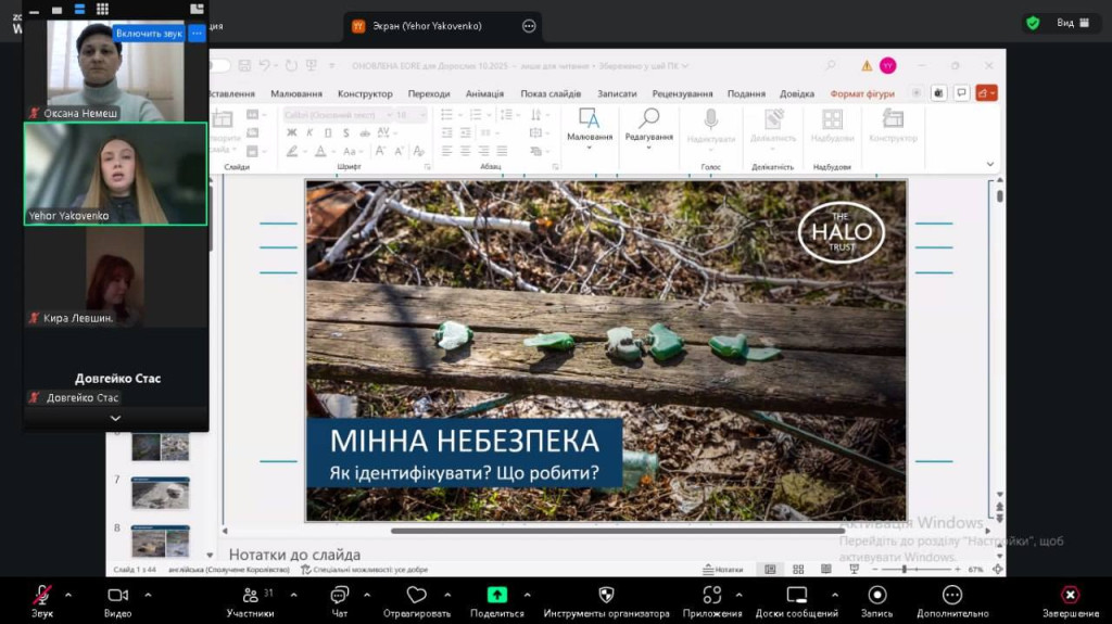 На виконання листа № 05-13/6300 від 13.11.2025 «Про організацію та проведення роз’яснювальної роботи щодо правил поводження з вибухонебезпечними предметами» Департаменту освіти Сумської обласної адміністрації та з метою формування усвідомленого ставлення до питань безпеки, ознайомлення з видами мін та боєприпасів, навчання розпізнавати небезпечні знаки та позначки, популяризації культури безпечної..