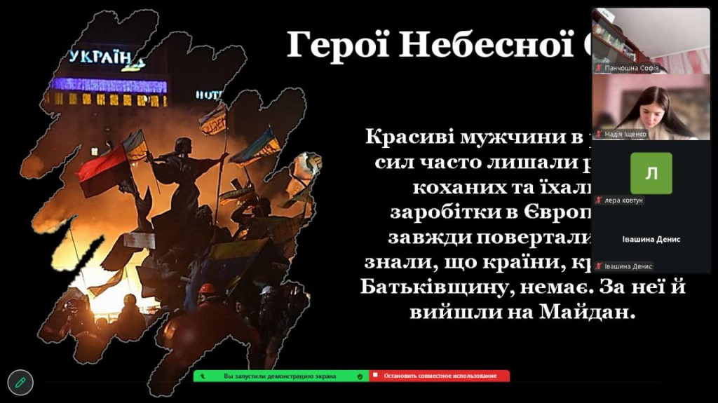 Особливу увагу приділили подвигу учасників Майдану та ролі молоді у відстоюванні демократичних цінностей. Імена